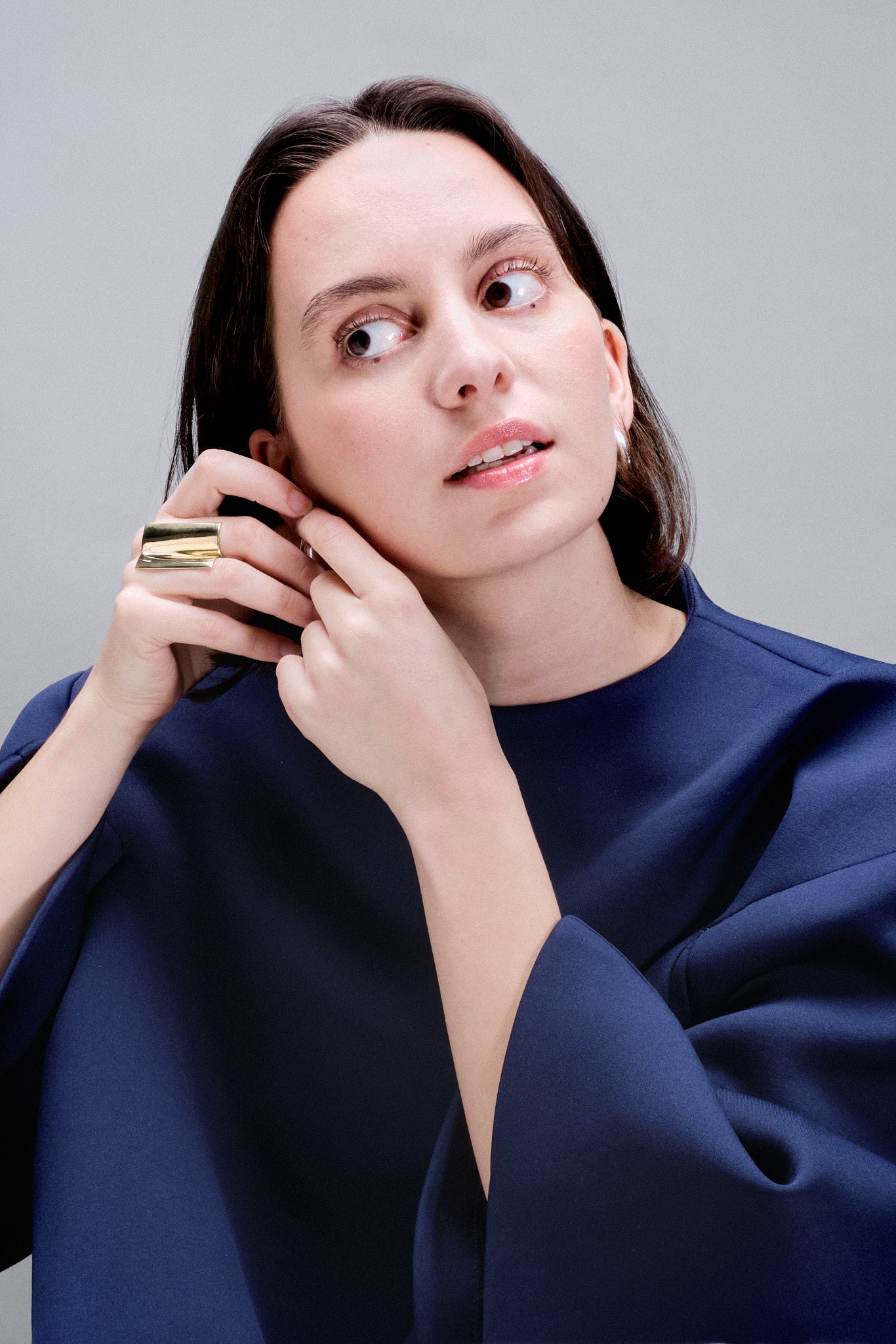Ses pièces, à la frontière entre bijou et sculpture, enveloppent le corps avec délicatesse, surlignant sa beauté naturelle pour la transformer en art.